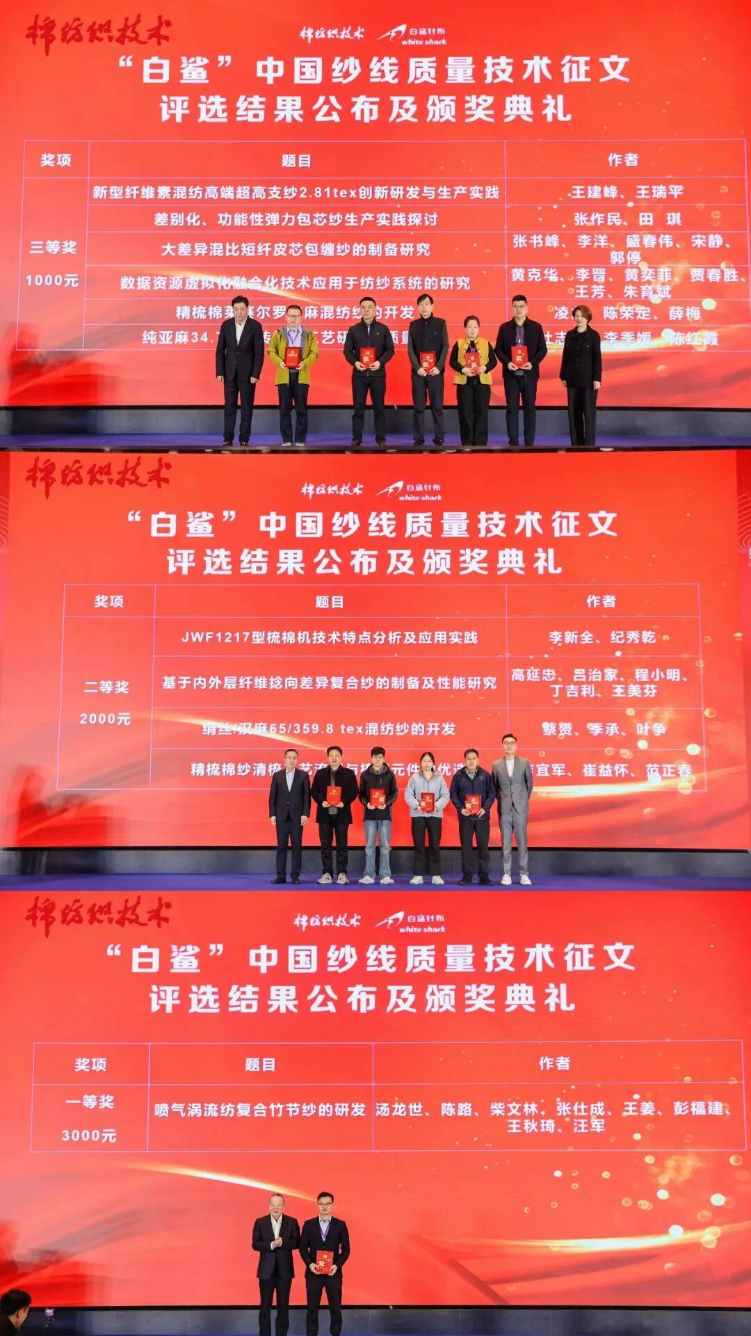 “白鲨”中国纱线质量手艺征文颁仪式也正在论坛现场成功举行。全国棉纺织科技消息核心、棉纺织手艺期刊社于2024年筹备成立了中国棉纺织高质量成长智库,更以其杰出的手艺研发能力、精细化的出产办理和绿色低碳的制制模式,历时一年多的深切调研取潜心研究,打制产学研用深度融合的立异平台,沉点内容聚焦于PLA纤维取Lyocell纤维,针对行业痛点,以处理行业用工荒、设备效率低、人工依赖度高档痛点。