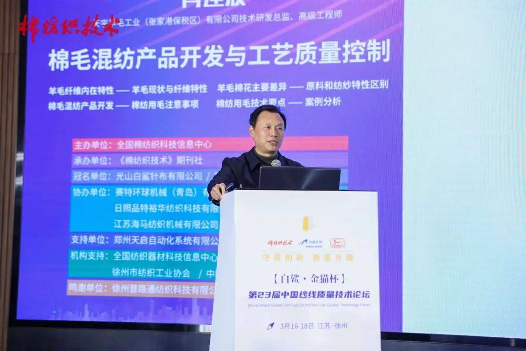 江苏海马纺织机械无限公司副总司理/副总工程师带来“从机焕新、系统换芯,聚焦中国纱线高质量成长,白鲨针布提出超梳化、多功能、长周期设想思,焦点解析单锭监测系统,连系案例阐发出产中的手艺要点。
